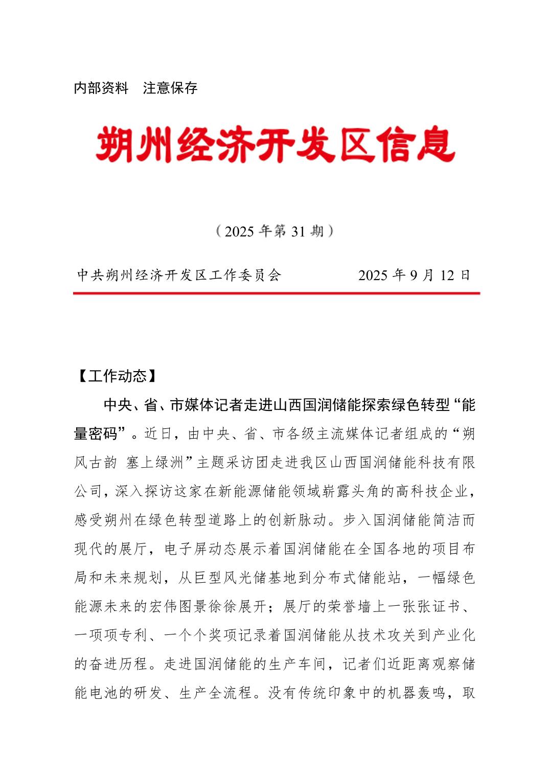 2025年朔州經(jīng)濟(jì)開發(fā)區(qū)政務(wù)信息第三十一期